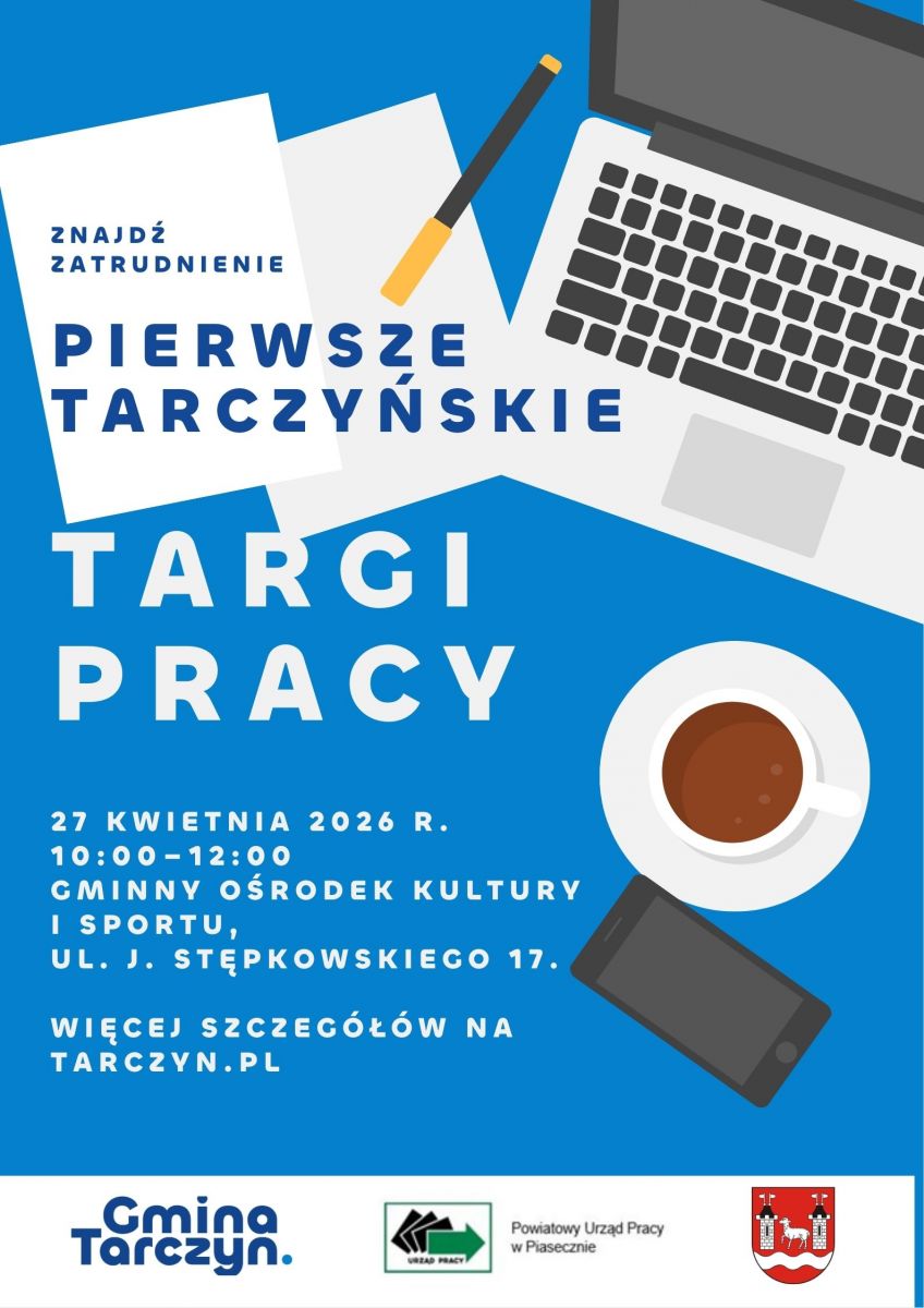 Powiatowy Urząd Pracy w Piasecznie wraz z Urzędem Miejskim w Tarczynie serdecznie zapraszają do wzięcia udziału w ‘PIERWSZYCH TARCZYŃSKICH TARGACH PRACY’, które odbędą się w dniu 27.04.2026 r.